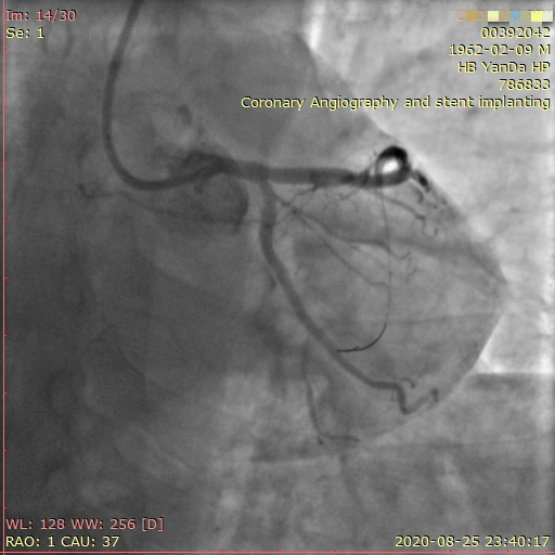 手術(shù)方案確定之后,在心血管內(nèi)三科趙景新主任、介入醫(yī)學(xué)科富孝晨主任的配合下,翟光耀主任親自擔(dān)任主刀,分別依次對李先生的三支動脈進行了完全血運重建。由于手術(shù)進展順利,李先生術(shù)中沒有任何癥狀,耐受良好,于是成功的將三支動脈“一站式”治療!術(shù)中,由于李先生左主干遠(yuǎn)端分叉處存在嚴(yán)重病變,翟光耀主任選擇國際指南推薦的DK-mini-Crush技術(shù),確保了分叉處兩支主干開口均萬無一失。據(jù)悉,DK-mini-Crush技術(shù)是目前冠脈分叉病變領(lǐng)域最為復(fù)雜及難以掌握的介入技術(shù)之一,對手術(shù)醫(yī)生經(jīng)驗、體力均提出了極大的挑戰(zhàn)。極為擅長復(fù)雜介入技術(shù)的翟光耀主任卻用嫻熟的技術(shù)確保了李先生手術(shù)的成功。