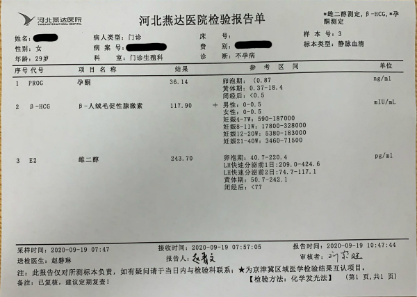 前期檢查、促排、取卵等等流程一氣呵成,但就在準備移植之前,李女士夫婦猶豫了,就在她對自己的身體有些許顧慮,趙磐琳主任卻觀察到李女士的子宮內環境非常好,內膜血流豐富,是移植的好時機,經過與李女士反復溝通,于2020年9月8日完成胚胎移植,經過漫長的等待,終于抽血證實懷孕!