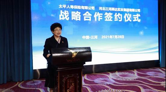 7月28日下午,太平人壽保險有限公司與河北三河燕達實業集團有限公司在燕達國際健康城隆重舉行戰略合作簽約儀式。雙方將攜手在醫療健康產業、聯合營銷、長期養老服務、保險服務等方面進行深度合作,打造出“保險金融+康養服務”的融合創新合作模式。燕達金色年華健康養護中心副總經理李東輝擔任活動主持。